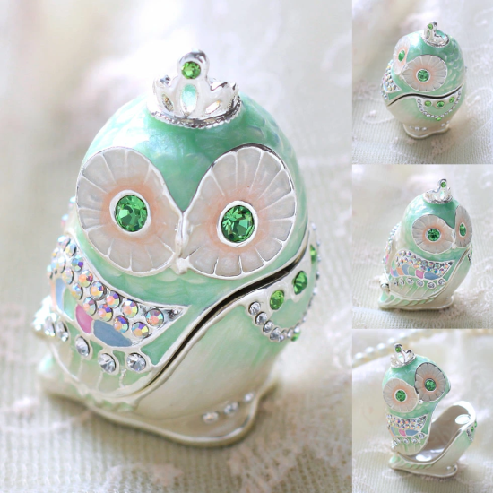 ティアラをかぶった縁起物のフクロウ、淡いグリーン。