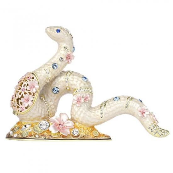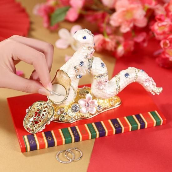 美しさと縁起の良さを兼ね備えた桜白蛇。優雅に輝く大きなクリスタルと、淡いピンクの光沢感のある桜が織りなすデザインは、贅沢感と気品を兼ね備えています。