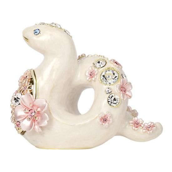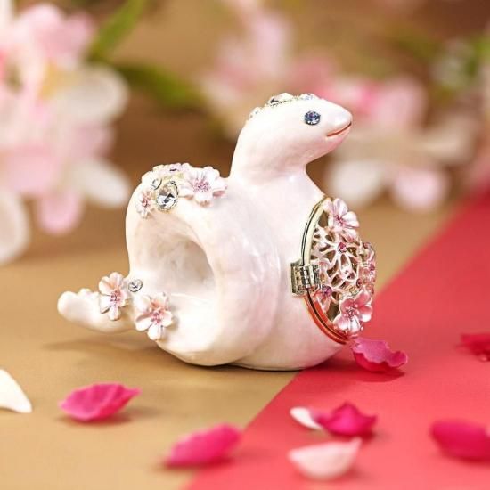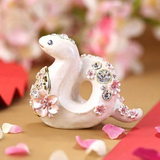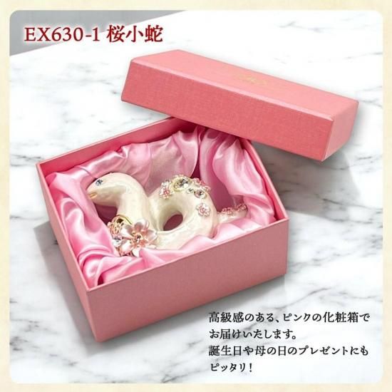 美しさと縁起の良さを兼ね備えた桜白蛇。優雅に輝く大きなクリスタルと、淡いピンクの光沢感のある桜が織りなすデザインは、贅沢感と気品を兼ね備えています。
